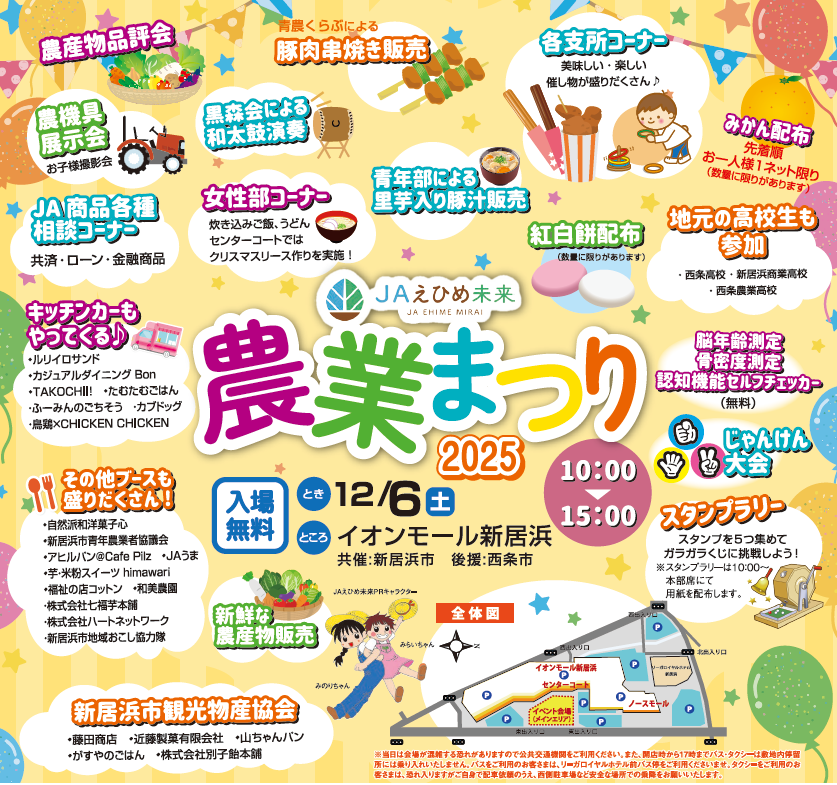 2025.11.19 お知らせ (12/6)【愛媛/新居浜】JAえひめ未来農業まつりに出店! この度、イオンモール新居浜にて行われるJAえひめ未来農業まつり2025に出店します。 カリットカリー他商品をお持ちしますので、この機会に是非お立ち寄りください。