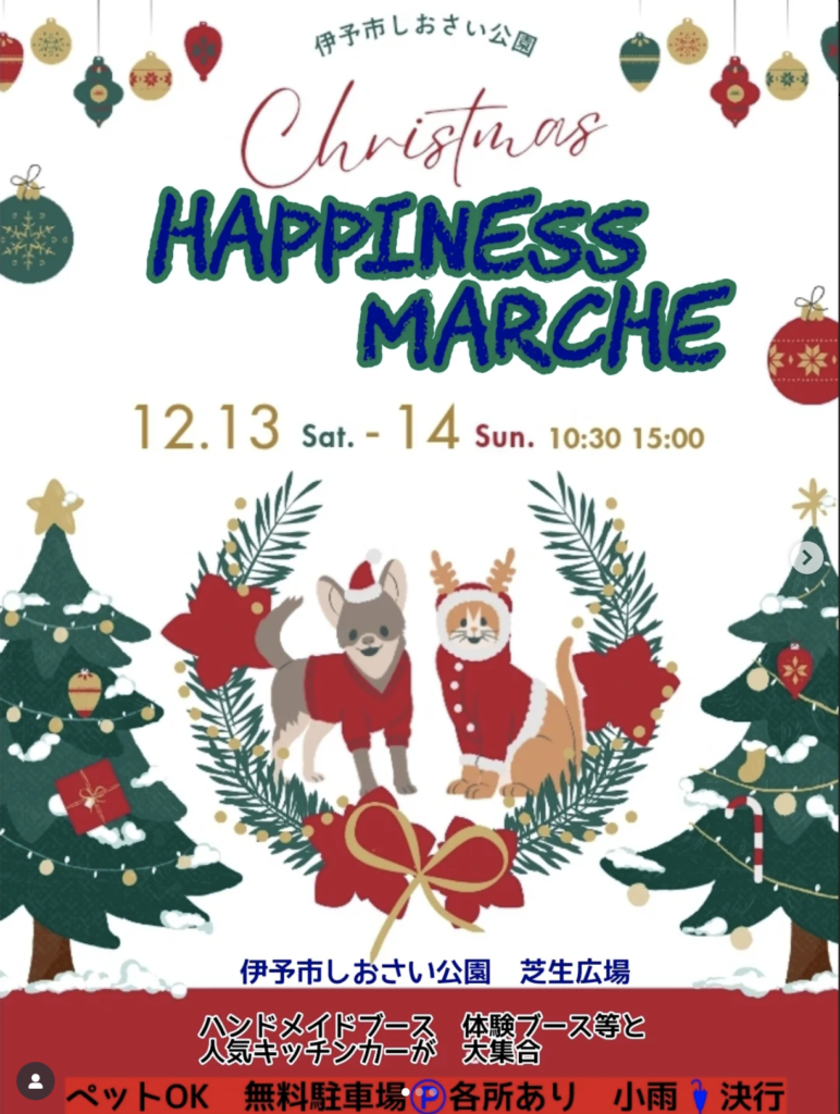 2025.11.19 お知らせ (12/13)【愛媛/伊予】しおさい公園に出店! この度、愛媛県伊予市のしおさい公園にて行われる「HAPPINESS MARCHE」に出店します。 カリットカリー他商品をお持ちしますので、この機会に是非お立ち寄りください。