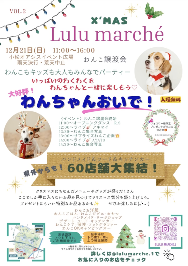 この度、西条市小松オアシスイベント広場で開催される「X’MAS Lulu Marche」に出店します。