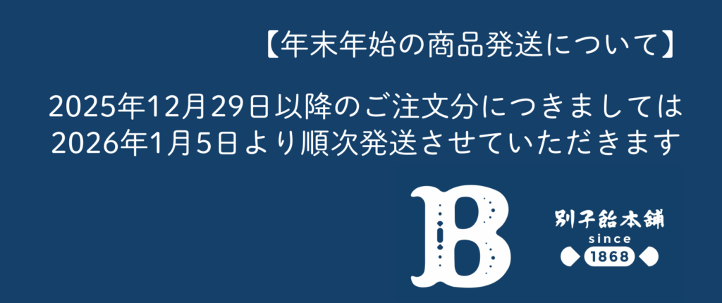 オンラインショップ:12月29日以降のご注文につきましては、1月5日より順次対応いたします。